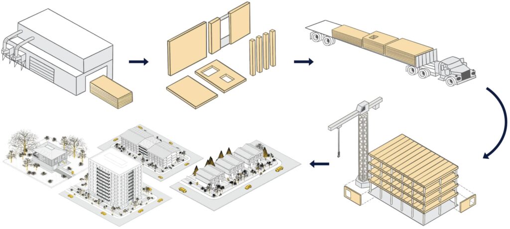 We are addressing the supply chain challenges of the fast-growing mass timber market through a decentralised micro-plant network and an integrated design for manufacture and assembly (DfMA) approach. We provide a vertically integrated solution that enables community builders to deliver homes that are sustainable and affordable. This proactive approach brings together leading mass timber industry expertise working together to accelerate schedules, without sacrificing precision and quality to meet the housing demand across North America.